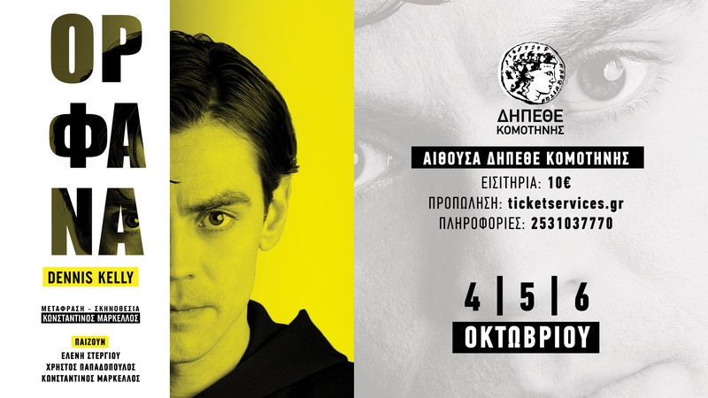 Τα "Ορφανά", ένα από τα πιο πολυπαιγμένα και πιο αγαπημένα αριστουργήματα της σύγχρονης ευρωπαϊκής δραματουργίας σε σκηνοθεσία και -νέα- μετάφραση του Κωνσταντίνου Μάρκελλου, η οποία τιμήθηκε με το Ευρωπαϊκό Βραβείο Θεατρικής Μετάφρασης Eurodram 2023, έρχεται στο ΔΗΠΕΘΕ Κομοτηνής για 3 μόνο παραστάσεις. Η παράσταση που ενθουσίασε κοινό και κριτικούς στην Αθήνα και στις πόλεις όπου περιόδευσε, θα παρουσιαστεί στην σκηνή του ΔΗΠΕΘΕ Κομοτηνής στις 4, 5 & 6 Οκτωβρίου. Παίζουν η Ελένη Στεργίου, ο Χρήστος Παπαδόπουλος και ο Κωνσταντίνος Μάρκελλος.
