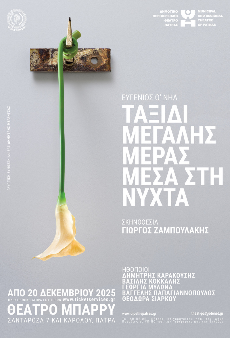 Το ΔΗ.ΠΕΘΕ Πάτρας παρουσιάζει στην Κεντρική του Σκηνή το έργο του Ευγένιου Ο' Νηλ Ταξίδι Μεγάλης Μέρας Μέσα στη Νύχτα, σε σκηνοθεσία Γιώργου Ζαμπουλάκη.