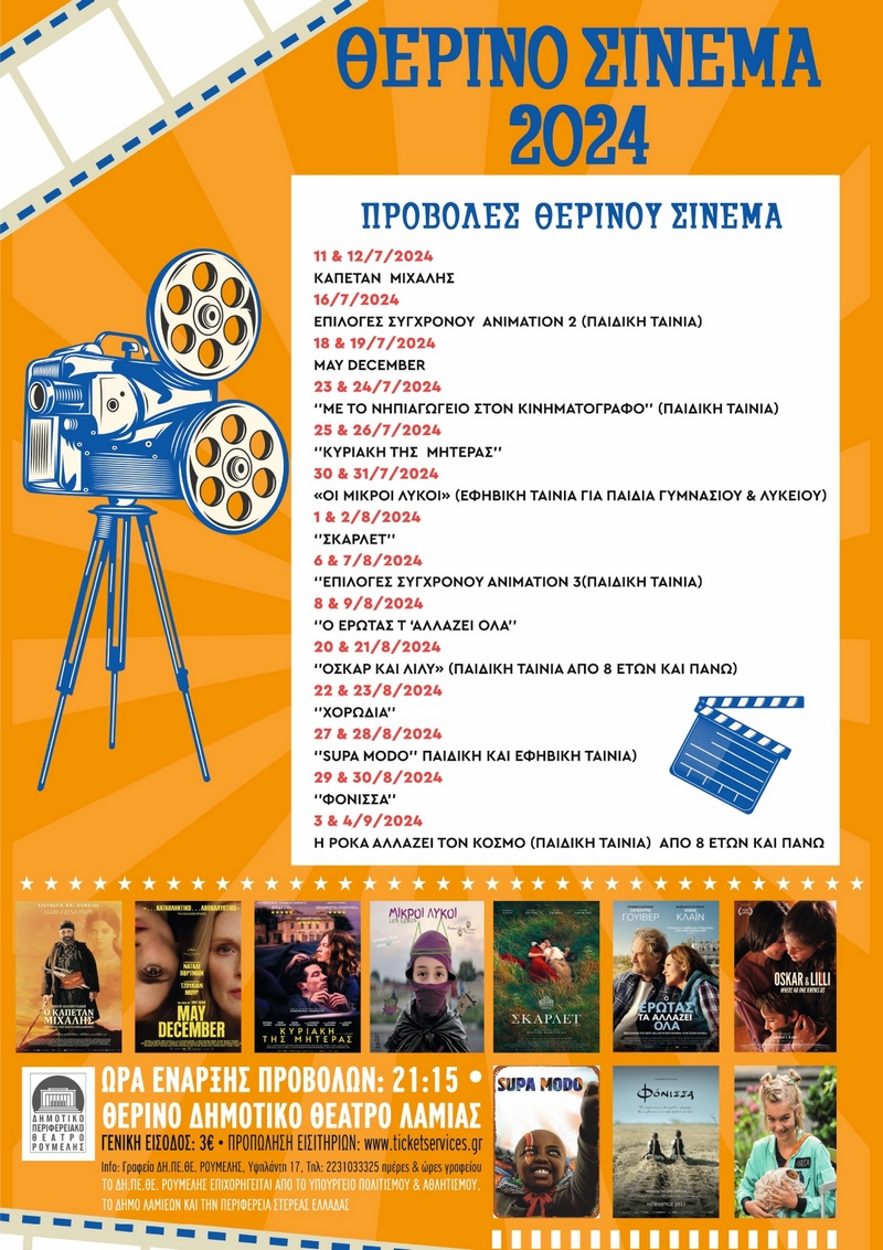 Πάμε Σινεμά; Τα καλοκαίρια μας και φέτος θα έχουν άρωμα κινηματογράφου στο Θερινό Δημοτικό Θέατρο... Είμαστε έτοιμοι και σας ανακοινώνουμε το πρόγραμμα μας, με νέες ταινίες για παιδιά, εφήβους και ενήλικες... Με σύγχρονο εξοπλισμό για να δούμε νέες ταινίες, με προσέγγιση σε παιδιά και εφήβους, με εκπαιδευτικό μήνυμα, το ΔΗΠΕΘΕ Ρούμελης δηλώνει παρών στο καλοκαίρι με Θερινό Σινεμά για όλους ... Σας περιμένουμε...