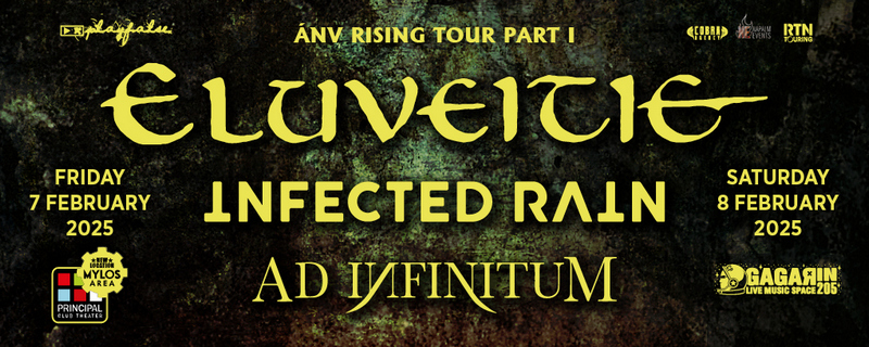 Από τις πρώτες τους εμφανίσεις στην χώρα μας, ως support στους KREATOR, το 2009, μάγεψαν το Ελληνικό κοινό και έκτοτε έχουν χτίσει μία φοβερή σχέση με το κοινό, με εμφανίσεις κάθε δύο χρόνια. Τα χρόνια πέρασαν και οι Eluveitie δεν μας επισκέφθηκανί για μεγάλο χρονικό διάστημα. Τον Φεβρουάριο του 2025 που θα μας επισκεφθούν σε Θεσσαλοννίκη και Αθήνα, θα έχουμε πλέον κλείσει δέκα χρόνια χωρίς να τους έχουμε δει (από το 2015). Πολλά έτη απουσίας, δεν νομίζετε; Πόσο μάλλον όταν, τη στιγμή που γράφεται αυτό το δελτίο τύπου, έχουν ανακοινώσει πως ξεκίνησαν τις ηχογραφήσεις του επερχόμενου έννατου στούντιο άλμπουμ τους, που -αν κρίνουμε από την ονομασία της περιοδείας τους- πιθανώς να φέρει τον τίτλο "Ánv Rising" και λογικά θα κυκλοφορήσει κοντά στις ημερομηνίες της περιοδείας και έξι χρόνια μετά το φοβερό "Ategnatos".