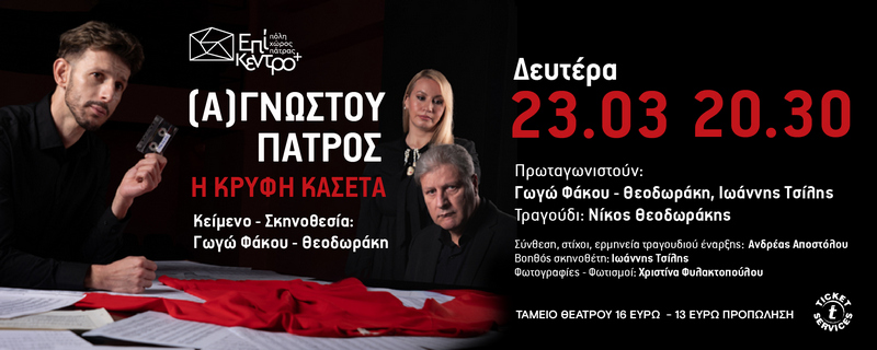 Βασισμένη στο βιβλίο (Α)ΓΝΩΣΤΟΥ ΠΑΤΡΟΣ, της Γωγώς Φάκου-Θεοδωράκη, η παράσταση, ξετυλίγει την ιστορία, από άλλη πλευρά. Την συνέντευξη της ηρωίδας, που ενσαρκώνει και σκηνοθετεί η συγγραφέας του βιβλίου, "διακόπτει" συχνά ο Νίκος Θεοδωράκης, που τραγουδά ζωντανά στην παράσταση..Στο ρόλο του δημοσιογράφους ο ανερχόμενος ηθοποιός Ιωάννης Τσίλης.