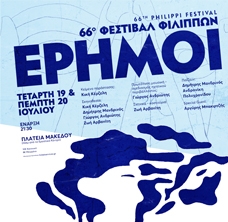 Το ΔΗ.ΠΕ.ΘΕ. Καβάλας, στο πλαίσιο του 66ου Φεστιβάλ Φιλίππων, παρουσιάζει την Τετάρτη 19 & την Πέμπτη 20 Ιουλίου στις 21.30 στη Πλατεία Μακέδου (πίσω από το Εργατικό Κέντρο Καβάλας) την παράσταση «Έρημοι» της Κικής Κέρζελη.