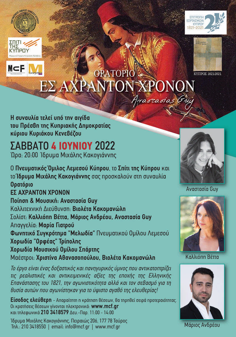 Oratorio for the celebration of 200 years of the Greek Revolution 1821-2021Poetry and composition by Anastasia Guy