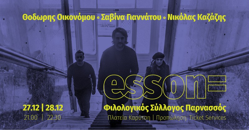 Ο Θοδωρής Οικονόμου, σε συνεργασία με τον Νικόλα Καζάζη και την συμμετοχή της Σαβίνας Γιαννάτου, παρουσιάζουν ζωντανά το μουσικό έργο ESSON= στις 27 & 28 Δεκεμβρίου στον Φιλολογικό Σύλλογο Παρνασσός.