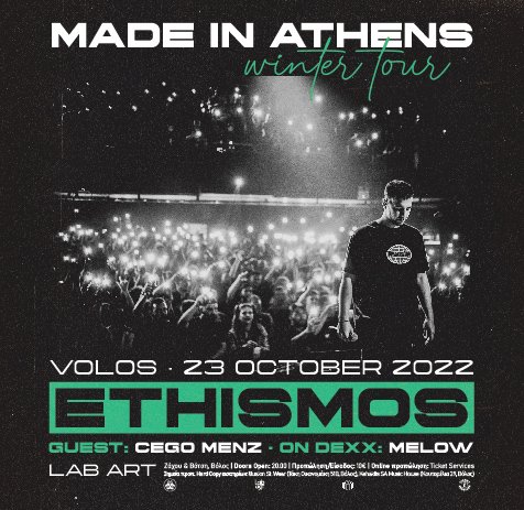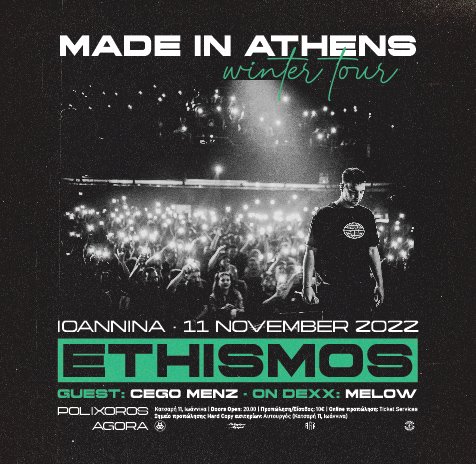 Το "Made in Athens" είναι μια ωδή στην Αθήνα αλλά και μια παράλληλη κριτική. Τα γραπτά του Εθισμού συναντούν τα beats του Golden Child, σε ένα urban ταξίδι κοινωνικής και προσωπικής ωρίμανσης. Εννιά κομμάτια, το ένα καλύτερο από το επόμενο, που μένουν κολλημένα στο μυαλό από το πρώτο κιόλας άκουσμα. Κι αφού σάρωσαν τις πλατφόρμες, ήρθε η ώρα να τραγουδηθούν σε όλη την Ελλάδα από το κοινό που τα αγκάλιασε.