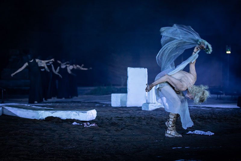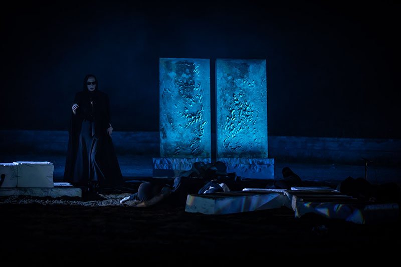 Η μυσταγωγική ατμόσφαιρα και η ακουστική της εκκλησίας αποτελούν ερέθισμα για μία εκ νέου ποιητική αναμέτρηση της τραγωδίας σε κλειστό χώρο.