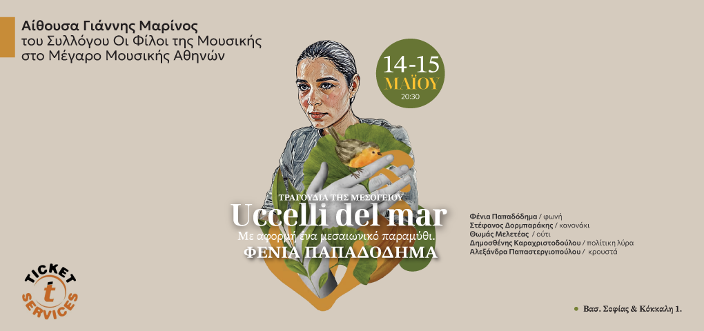 Η μουσική παράσταση «Uccelli del mare», που παρουσιάστηκε στο Μέγαρο Μουσικής Αθηνών, το Φθινόπωρο του 2025 με τεράστια επιτυχία, επιστρέφει για δύο μόνο παραστάσεις στις 14 και 15 Μαΐου, στις 20.30, στην Μουσική Βιβλιοθήκη, αίθουσα Γ. Μαρίνος.