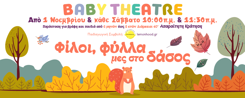Η παράσταση «Φίλοι, Φύλλα μες στο Δάσος» έχει σχεδιαστεί ειδικά για βρέφη και παιδιά ηλικίας 6 μηνών έως 2 ετών. Πρόκειται για μια παιδαγωγικά μελετημένη εμπειρία που προάγει τη φαντασία, την παρατηρητικότητα και την αλληλεπίδραση των βρεφών με το περιβάλλον στον ζεστό και κατάλληλα διαμορφωμένο χώρο του Θεάτρου ΕΛΕΡ.