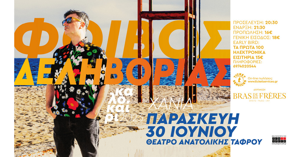 Την Παρασκευή 30 Ιουνίου, ο Φοίβος Δεληβοριάς και οι συνεργάτες του εμφανίζονται στο Θέατρο Ανατολικής Τάφρου στα Χανιά