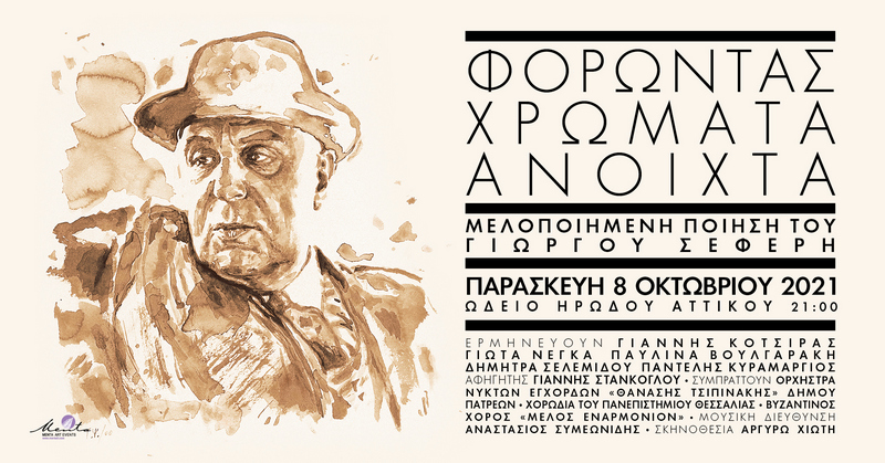 Από το ποίημα «Άνοιξη μ.Χ.» ο τίτλος μας. « Φορώντας χρώματα ανοιχτά» και σιγοτραγουδώντας «ανάμεσα στην ισημερία της άνοιξης και την ισημερία του φθινοπώρου» ποιήματα του πρώτου νομπελίστα ποιητή μας, συντονιζόμαστε με το εύρωστο πνεύμα αισιοδοξίας, υπομονής και παρότρυνσης που διατρέχει το σεφερικό έργο. Συντονιζόμαστε με αυτό το «λίγο ακόμα, να σηκωθούμε λίγο ψηλότερα», κρατώντας κι εμείς τη ζωή μας όπως κράτησε ο ποιητής τη δική του: «ψιθυριστά μέσα στην απέραντη σιωπή».