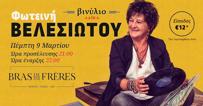 Η Φωτεινή Βελεσιώτου κόντρα στους καιρούς που μας θέλουν αποξενωμένους κι απομακρυσμένους, μας προσκαλεί την Πέμπτη 09 Μαρτίου 2023 στο BrasDeFrères στα Χανιά, να θυμηθούμε πώς είναι να γινόμαστε όλοι μια μεγάλη παρέα.