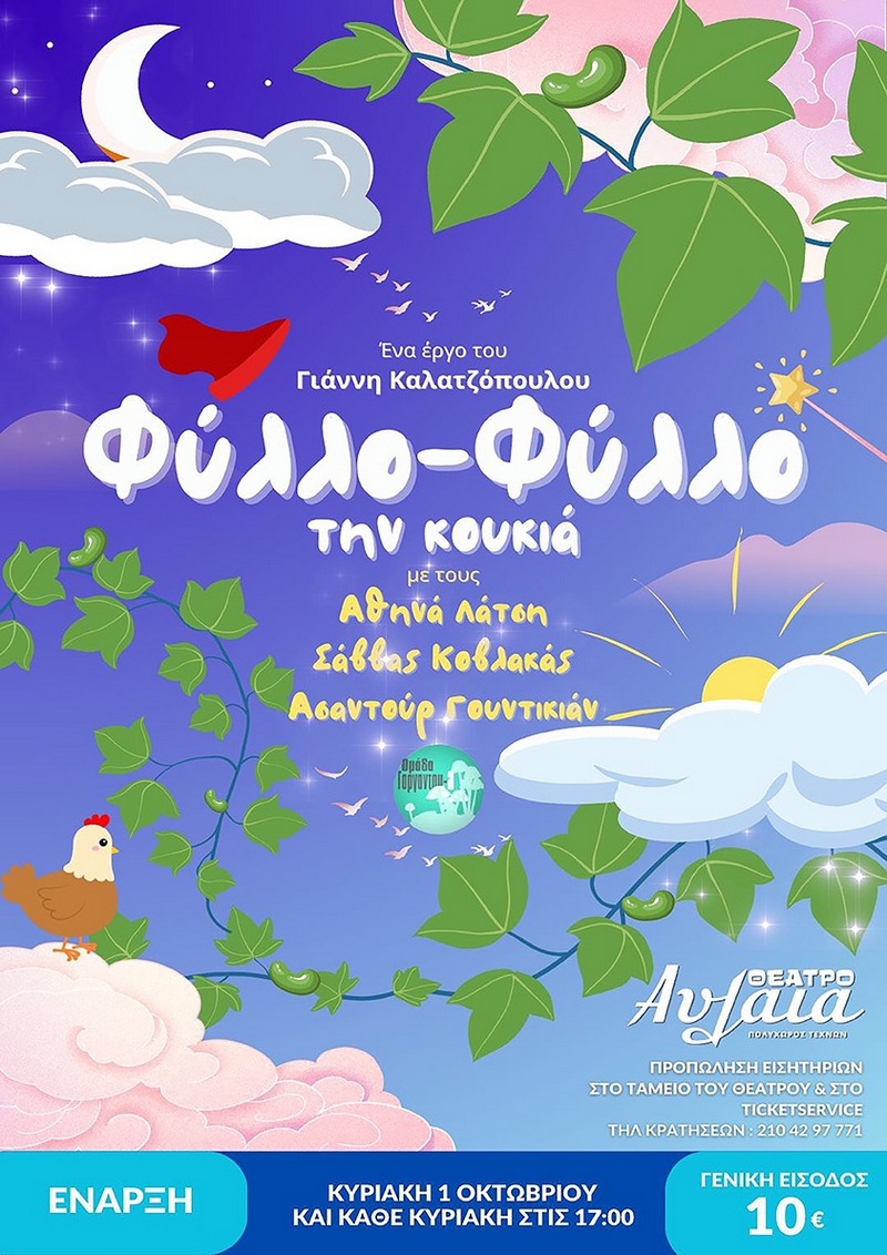 Μετά την περσινή επιτυχία που σημείωσε το έργο " Όταν η πασχαλίτσα συνάντησε ελέφαντα " του Χ. Μπουλώτη, η ομάδα Γαργαντου-a ,που την αποτελούν οι ηθοποιοί Ασαντούρ Γουντικιάν , Σάββας Κοβλακάς , Μαρία Πιπιλιού , Αθηνά Λάτση θα έχουν την χαρά να σας παρουσιάσουν το καινούργιο έργο του Γιάννη Καλατζόπουλου, που γράφτηκε ειδικά για να παρουσιάζεται μέσα στα Σχολεία, και το οποίο βασίζεται σ' ένα παραδοσιακό παραμύθι της Μήλου ( Φύλλο -φύλλο η κουκιά ). Με σεβασμό και με αίσθημα ευθύνης απέναντι στα παιδιά, η Ομάδα Γαργαντού-a δημιουργεί παραστάσεις εμπνευσμένες από τα λαϊκά παραμύθια και τους μύθους από όλους τους τόπους του κόσμου . Τα ουσιώδη μηνύματα που περιέχουν οι ιστορίες σε συνδυασμό με το διαδραστικό παιχνίδι και τη ζωντανή μουσική δίνουν την ευκαιρία στα παιδιά να κατανοήσουν την ιστορία με το νου τους αλλά και με τις αισθήσεις τους.