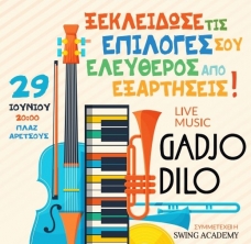 Στις 9μμ. θα ξεκινήσει η συναυλία των Gadjo Dilo, ένα συγκρότημα, που, μέσα από το πάντρεμα διαφορετικών ήχων, παρασέρνει το κοινό σε μια gypsy jazz γιορτή! Η ιδέα της δημιουργικής σύνθεσης των διαφορετικών κουλτουρών, οπτικών, στοιχείων είναι ιδιαιτέρως γνώριμη στη φιλοσοφία της πρόληψης, μια και διαμορφώνει ένα μεγάλο μέρος του έργου της: η αλληλεπίδραση με το διαφορετικό εμπλέκει τους ανθρώπους σε αυθεντικές σχέσεις, τους βοηθάει να αποδεχτούν τον εαυτό τους και τους άλλους, να επικοινωνήσουν, να ελευθερωθούν από την προκατάληψη... με λίγα λόγια να ισχυροποιήσουν κάποιους πρωταρχικούς προστατευτικούς παράγοντες κατά των εξαρτήσεων.