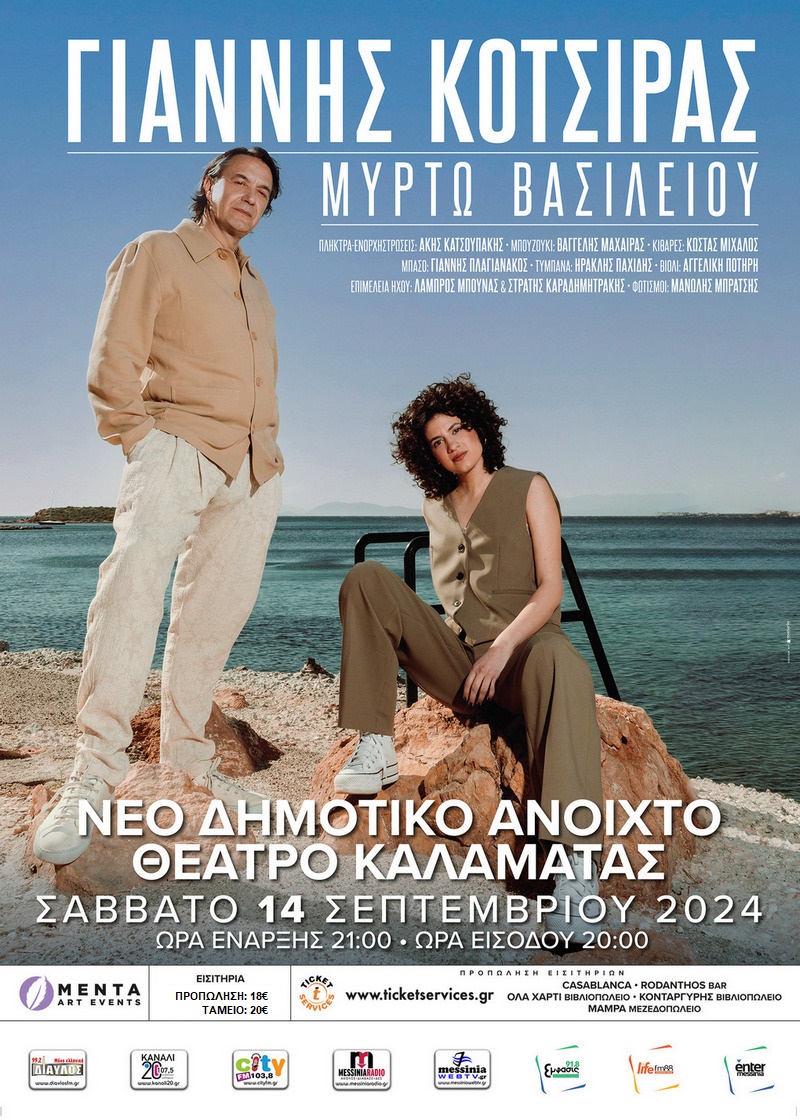 Το φετινό καλοκαίρι ο Γιάννης Κότσιρας, έχοντας στο πλάι του για δεύτερη χρονιά την ξεχωριστή ερμηνεύτρια της νέας γενιάς Μυρτώ Βασιλείου, μας έχει ετοιμάσει ένα πρόγραμμα γεμάτο εκπλήξεις . Παλιά και αγαπημένα, αλλά και ολοκαίνουρια τραγούδια από τον νέο του κύκλο τραγουδιών «Παράθυρο στο άπειρο», σε μουσική Μανώλη Ανδρουλιδάκη, πάνω σε στίχους και ποιήματα του Άλκη Αλκαίου.