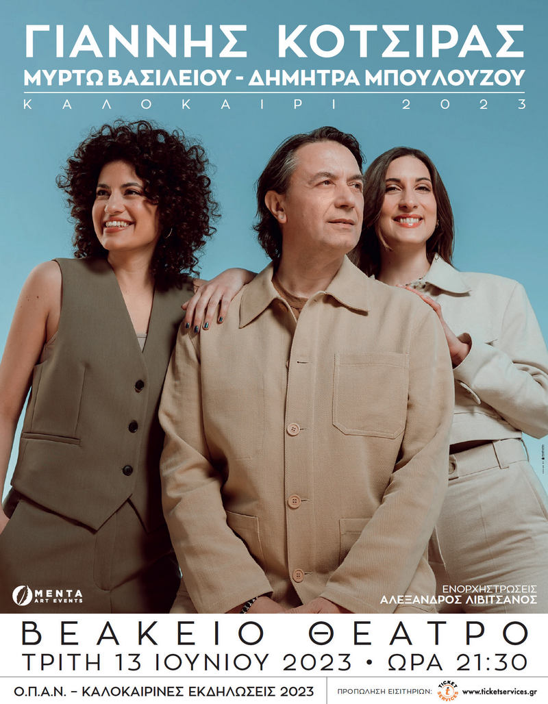 Το καλοκαίρι που έρχεται κι έχοντας στο πλάι του την Μυρτώ Βασιλείου και τη Δήμητρα Μπουλούζου, ο Γιάννης Κότσιρας θα παρουσιάσει ένα πρόγραμμα γεμάτο εκπλήξεις, εμπνευσμένες διασκευές, τραγούδια από την τηλεοπτική σειρά Σασμός φυσικά, αλλά και τα διαχρονικά λαϊκά τραγούδια που πάντα έχουν το δικό τους χώρο στις καλοκαιρινές του συναυλίες!