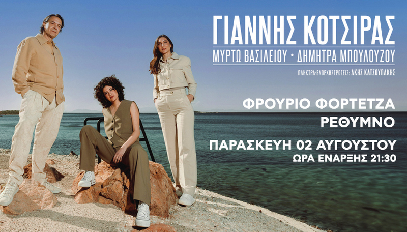 Το φετινό καλοκαίρι ο Γιάννης Κότσιρας, έχοντας στο πλάι του για δεύτερη χρονιά την ξεχωριστή ερμηνεύτρια της νέας γενιάς Μυρτώ Βασιλείου αλλά και τη Δήμητρα Μπουλούζου, σταθερή συνεργάτιδα του τα τελευταία έξι χρόνια, μας έχει ετοιμάσει ένα πρόγραμμα γεμάτο εκπλήξεις. Παλιά και αγαπημένα, αλλά και ολοκαίνουρια τραγούδια από τον νέο του κύκλο τραγουδιών «Παράθυρο στο άπειρο», σε μουσική Μανώλη Ανδρουλιδάκη, πάνω σε στίχους και ποιήματα του Άλκη Αλκαίου.