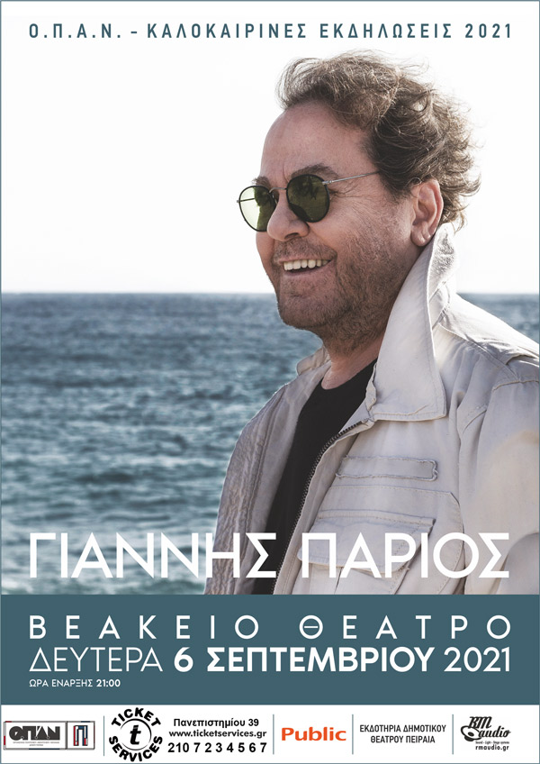 Ο Γιάννης Πάριος, ο κορυφαίος ερωτικός τραγουδιστής, έρχεται στον Πειραιά να μας χαρίσει μια αξέχαστη καλοκαιρινή βραδιά με τις μεγάλες επιτυχίες του .Ολα αυτά τα χρόνια δεν σταμάτησε να μας θυμίζει την ομορφιά της ζωής μέσα από τα τραγόυδια του έρωτα που έχει ερμηνεύσει.