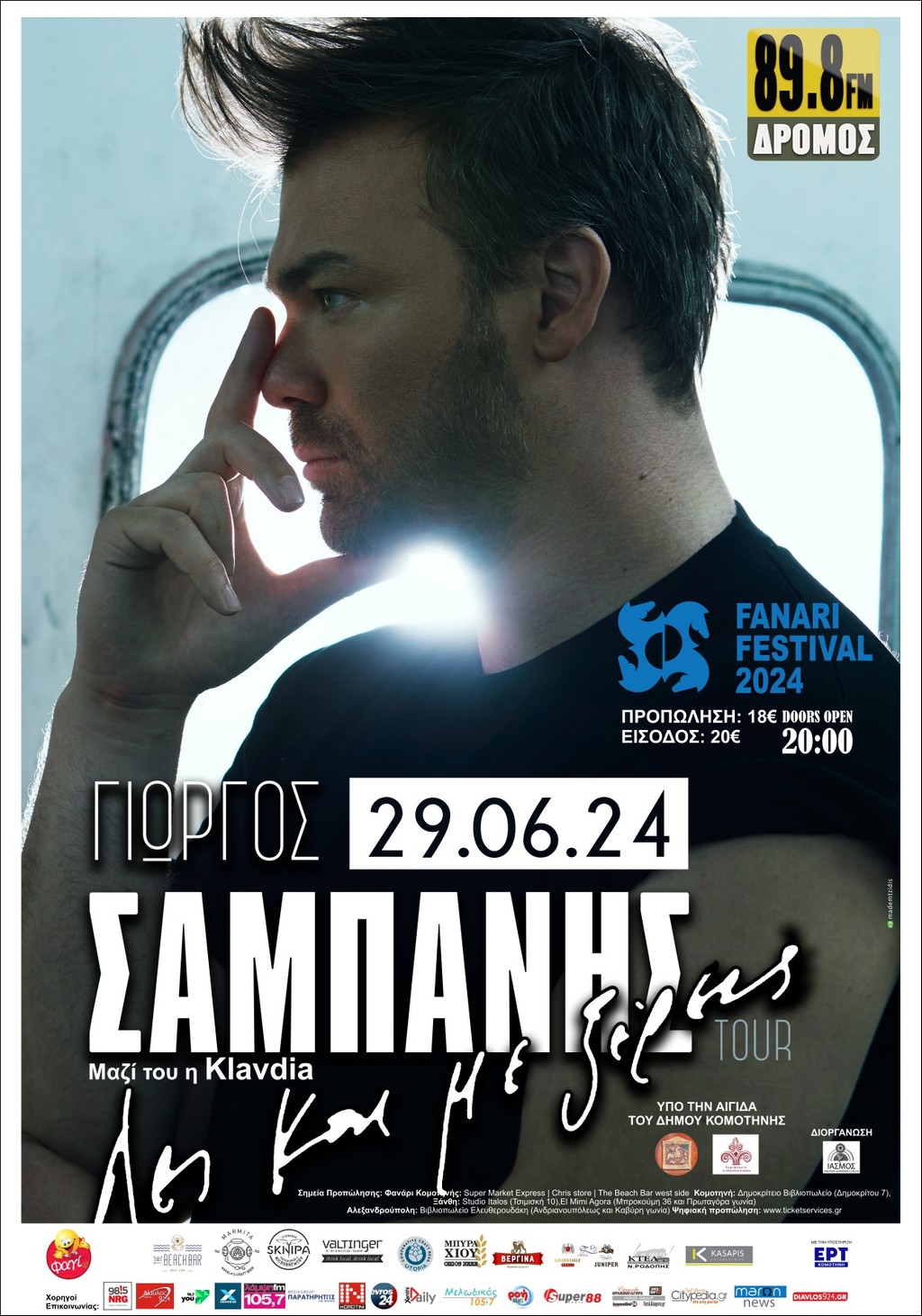 Ο Γιώργος Σαμπάνης δίνει καλοκαιρινό ραντεβού με το κοινό της Κομοτηνής με μια μεγάλη συναυλία, το Σάββατο 29 Ιουνίου στα πλαίσια του 7ου festival Φαναρίου Ροδόπης.