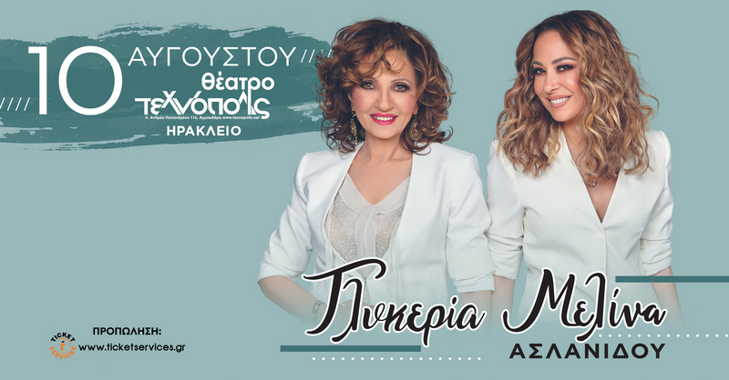 Οι δύο σπουδαίες και χαρισματικές ερμηνεύτριες Γλυκερία & Μελίνα Ασλανίδου, σε μία κορυφαία μουσική συνάντηση επί σκηνής αυτό το καλοκαίρι! Θα παρουσιάσουν σε επιλεγμένους χώρους σε όλη την Ελλάδα και την Κύπρο, ένα ξεχωριστό, αυθεντικό, και ιδιαίτερα ψυχαγωγικό πρόγραμμα, με τις μεγαλύτερες επιτυχίες τους, αλλά και αγαπημένα τραγούδια - σταθμούς σπουδαίων Ελλήνων δημιουργών.