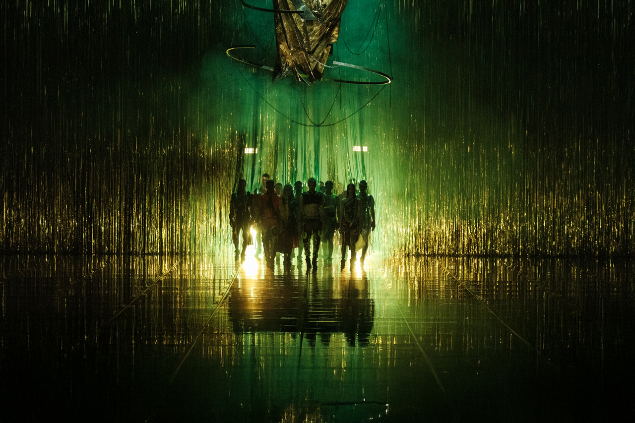Μέσα από χρυσές αντανακλάσεις, κάθετες οθόνες, λέξεις-συνθήματα και έναν πολυέλαιο μεγάλης κλίμακας, του εικαστικού Πέτρου Τουλούδη, η Χρυσή εποχή υπογράφει τη διακήρυξη μιας νέας πίστης που τοποθετεί τα πιστεύω της όχι στον θεό, αλλά στον άνθρωπο, όχι «εν τοις ουρανοίς» αλλά «επί της γης» - μια διακήρυξη που δεν υπόσχεται τη σωτηρία, αλλά εξασφαλίζει την έξοδο από την κόλαση. Δεκαέξι χορευτές, άλλοτε σαν μια αλλόκοτη μάζα που επιβιώνει στον ξέφρενο ρυθμό, άλλοτε σαν καλοκουρδισμένοι στρατιώτες μιας αυστηρής χορογραφίας και άλλοτε σαν απρόσμενα ντουέτα ανάμεσα στον ρομαντισμό και την απόγνωση, συνοψίζουν την αναπτρεπτική διαδρομή του Ρήγου από το χοροθεάτρο έως τη νεοκλασική αυστηρότητα του Μπαλέτου της ΕΛΣ.