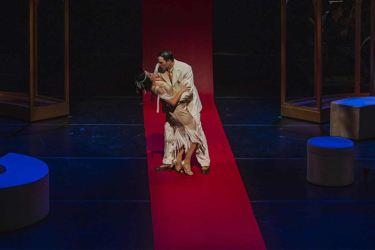 The work I Want to See the Pope! is brought to life at the GNO Alternative Stage under the baton of Nicolas Vassiliou and with an imaginative stage direction by the prolific director Natasha Triantafylli. As she notes: At some point in 1920, Theophrastos Sakellaridis writes the piece titled I Want to See the Pope!. The First World War has ended. The financial situation is challenging, but there is also a need to escape into pleasure, a need for wild amusement, wealth, and prosperity. New dance schools, cinemas, and cabarets open up in Athens. Anna and Adrianos get married and go on a wedding trip to Rome, in the West. At the same time, however, Greek troops have already begun operating in Asia Minor. Through singing, we can speak of the most beautiful and the worst things. We can dance. Through dancing, we can understand most things. We can choose whom we want to waltz with, whom we want to fox-trot with, and from whom we want to keep a distance, all while keeping the same rhythm. Yet, we get carried away and remain silent and motionless for many minutes, days, or even months..