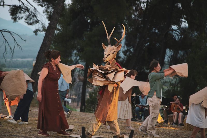 Στη δημιουργική ομάδα συναντούμε στη μουσική σύνθεση τον Γιώργο Δούσο και στα κείμενα τις Ελένη Ευθυμίου, Μαριλένα Κατρανίδου και Γιώτα Κουιτζόγλου σε συνεργασία με την ομάδα θεατρικής έκφρασης και δημιουργικής γραφής των συμμετεχόντων. Κατά τη διάρκεια της υλοποίησης των εργαστηρίων την έρευνα διεξήγαγαν οι Μαριλένα Κατρανίδου και Γιώτα Κουιτζόγλου, ενώ η δραματουργική επεξεργασία έγινε από την Ελένη Ευθυμίου. Τη σκηνοθεσία υπογράφουν οι Ελένη Ευθυμίου και Μαριλένα Κατρανίδου με βοηθό τη Γιώτα Κουιτζόγλου, τα σκηνικά και τα κοστούμια η Διδώ Γκόγκου, την κατασκευή ειδικών κοστουμιών η ομάδα ενδυματολογίας & ειδικών σκηνικών κατασκευών των συμμετεχόντων, τη χορογραφία η Πωλίνα Κρεμαστά και τους φωτισμούς η Ζωή Μολυβδά-Φαμέλη. Τη διδασκαλία της μουσικής σύνθεσης καθοδήγησε η Σοφία Καμαγιάννη, ενώ την ηχοληψία αναλαμβάνει ο Κώστας Μπώκος. Στην παράσταση συμμετέχουν κάτοικοι των χωριών: Αγία Άννα, Αχλάδι, Βασιλικά, Ιστιαία, Κεχριές, Λίμνη, Μαντούδι, Μουρτιάς, Ροβιές.