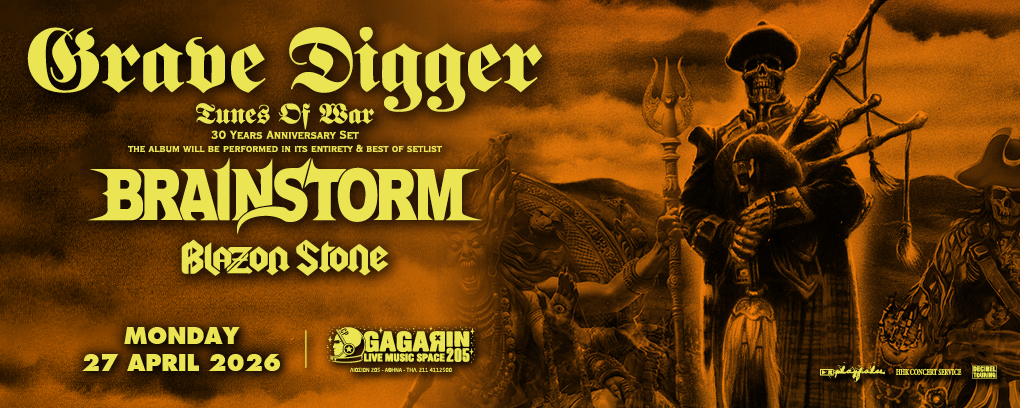 Τη Δευτέρα 27 Απριλίου 2026, η Αθήνα θα βιώσει ένα heavy - power metal πανδαιμόνιο, που θα μας μεταφέρει στις ένδοξες εποχές του είδους, όταν αυτό μονοπωλούσε το ενδιαφέρον των Ελλήνων οπαδών της σκληρής μουσικής. Στη σκηνή του Gagarin 205 Live Music Space, θα εμφανιστούν οι Γερμανοί GRAVE DIGGER, που θα παρουσιάσουν στην ολότητά του το εμβληματικό "Tunes Of War", για την 30η του επέτειο, καθώς και ένα Best Of setlist. Την σκηνή θα μοιραστούν μαζί με τους επίσης Γερμανούς BRAINSTORM και τους Σουηδούς BLAZON STONE.