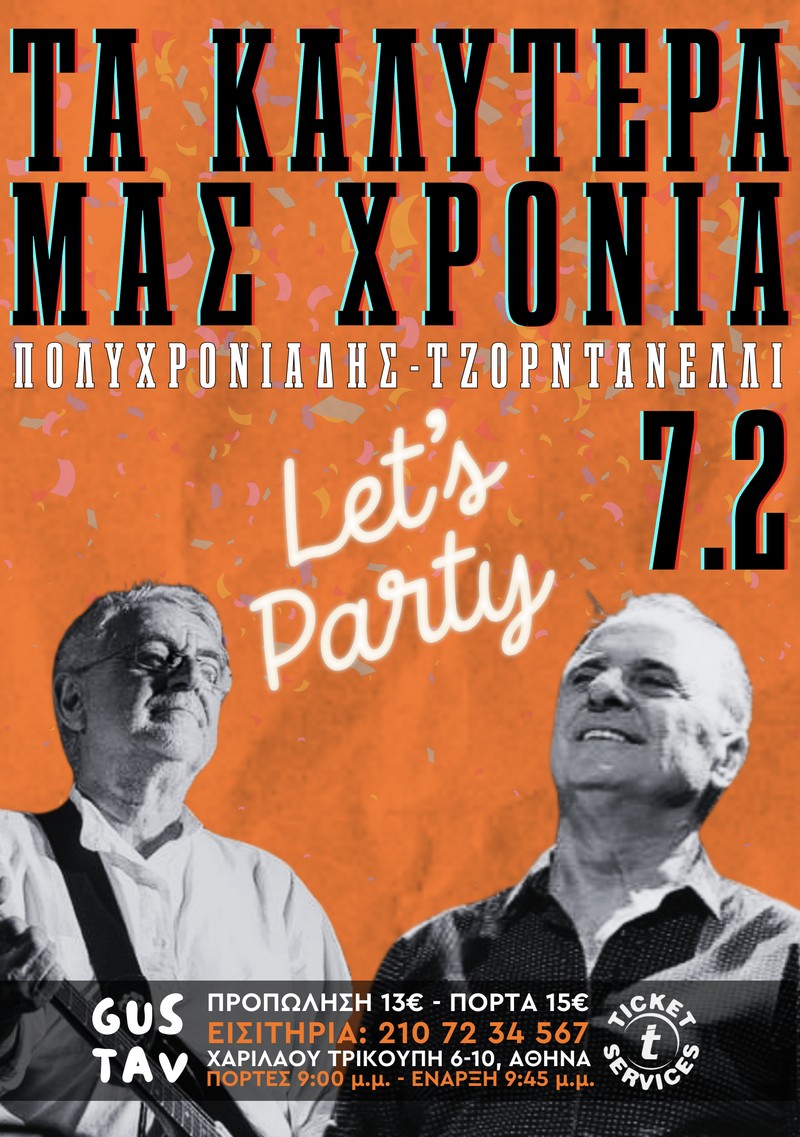 Το Σάββατο 7 Φεβρουαρίου, στο Gustav (Χαριλάου Τρικούπη 6-10, Αθήνα), οι Λάκης Τζορντανέλλι και Γιώργος Πολυχρονιάδης παρουσιάζουν την παράσταση «Τα Καλύτερά μας Χρόνια».
