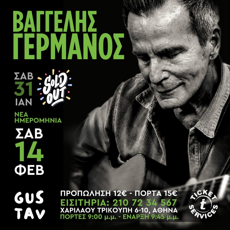 • Σάββατο 14 Φεβρουαρίου 2026, 21:45 ΒΑΓΓΕΛΗΣ ΓΕΡΜΑΝΟΣ Gustav Athens ΕΙΣΙΤΗΡΙΑ