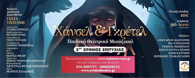 Η Παιδική Σκηνή της Γιώτας Τζουάνη, μετά τις SOLD OUT παραστάσεις της στην έδρα της στο Θέατρο Αυλαία στον Πειραιά, ξεκινά την ΠΕΡΙΟΔΕΙΑ ΤΗΣ ΑΝΑ ΤΗΝ ΕΛΛΑΔΑ, με το Παιδικό Θεατρικό Μιούζικαλ "ΧΑΝΣΕΛ & ΓΚΡΕΤΕΛ"