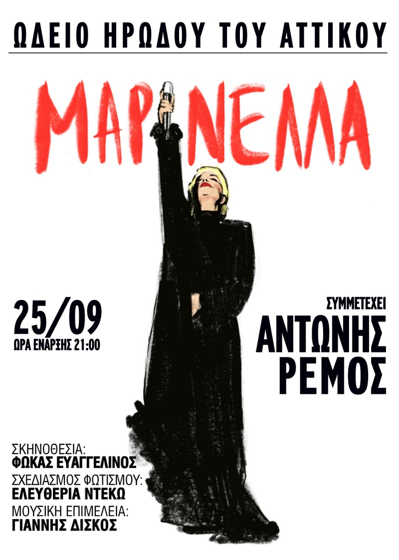 Μια παράσταση με την ψυχή, τη δύναμη της φωνής και της ερμηνείας τής μιας και μοναδικής, Μαρινέλλας. Μια παράσταση κορύφωση της σπουδαίας μουσικής διαδρομής της. Με την ερμηνεία, το πάθος, την εκφραστικότητά, τη φωνή, το ταλέντο τη θεατρικότητα της, διαρκεί και ενώνει με τη μουσική της ολόκληρες γενιές Ελληνίδων και Ελλήνων.