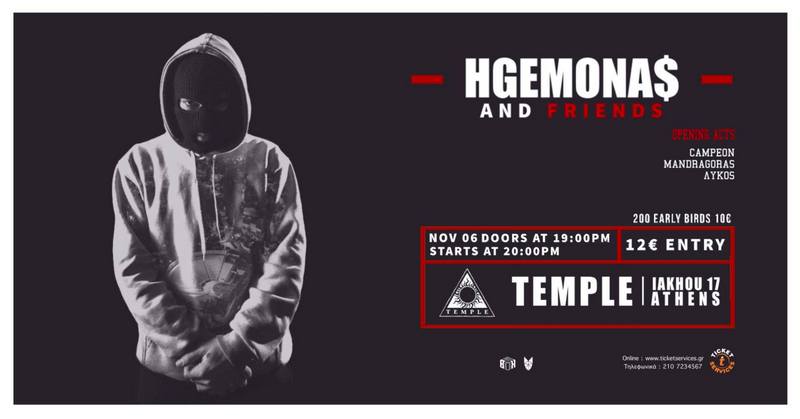 Hgemona$ θα εμφανιστεί σε ένα μοναδικό live. Έχοντας ήδη πολλές επιτυχίες στο δυναμικό του και έχοντας χτίσει φανατικούς ακροατές, ήρθε η κατάλληλη στιγμή να παρουσιάσει τα κομμάτια του σε μια εμφάνιση που θα μείνει αξέχαστη. Στις αποσκεύες του, εκτός από τα παλαιότερα tracks του, το φετινό του άλμπουμ "Dope Sport" και τα ολοκαίνουργια singles του "Badman" με Mente Fuerte και "Plan Out" με HV$K. Το κοινό, μετά από τόσο καιρό μακριά από τα live, ανυπομονεί να τον δει για πρώτη φορά από κοντά και ο Hgemona$ σίγουρα δεν θα τους απογοητεύσει. Ειλικρινής, ευθύς, προκαλεί με τα κομμάτια του και έρχεται να φέρει πανικό στην Αθήνα. Με support acts από