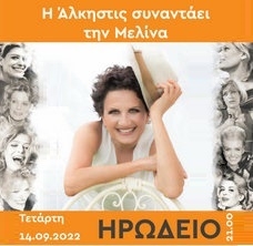 The great performer will remind us of Melina Merkouri's songs that are known from her appearances at the cinema, the theater but also from her exile in Paris.