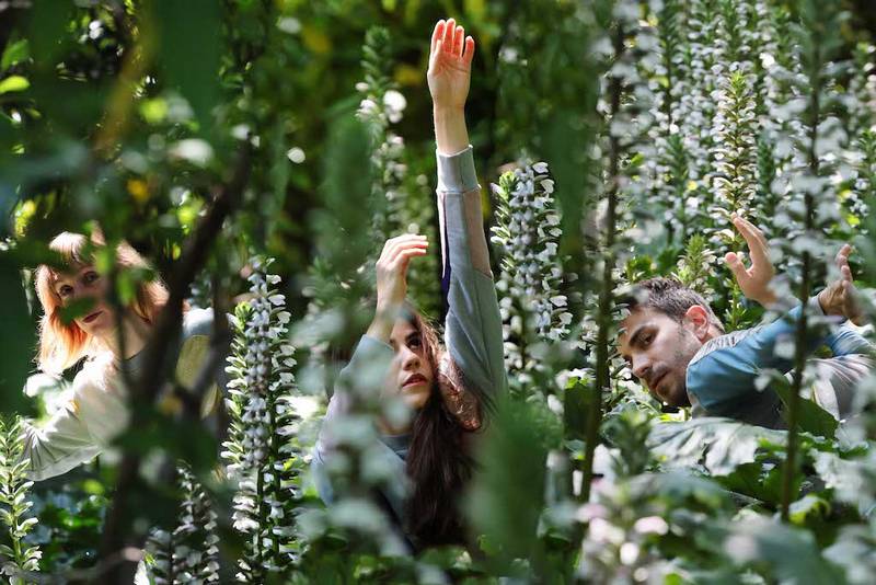 Dancers and musicians compose the ephemeral organism of this performance that can be perceived as part of another larger ecosystem. The choreography explores the function of breathing as a biological, psychological and spiritual node associating different species and cultures. Breath of the world activates empathy and proposes the experience of a performance as a gathering of different species.