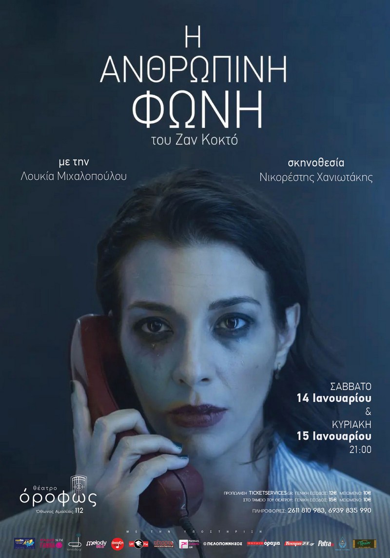 Μετά την μεγάλη επιτυχία της «Γίδας ή Ποια είναι η Σύλβια;», η Λουκία Μιχαλοπούλου συναντά ξανά τον Νικορέστη Χανιωτάκη σε μια πολύ ξεχωριστή συνεργασία. Αυτήν την φορά αγκαλιάζουν τον σπουδαίο μονόλογο του Ζαν Κοκτώ «Η Ανθρώπινη Φωνή». Η κάτοχος του θεατρικού βραβείου Μερκούρη (2011) αναμετράται με έναν εμβληματικό ρόλο που κατά το παρελθόν ερμήνευσαν κάποιες από τις σπουδαιότερες ηθοποιούς ανά τον κόσμο (Σιμόν Σινιορέ, Ίνγκριντ Μπέργκμαν, Λιβ Ούλμαν, Χούλια Μιχένες, Ντενίζ Ντιβάλ, Ρενάτα Σκότο κ.α.).
