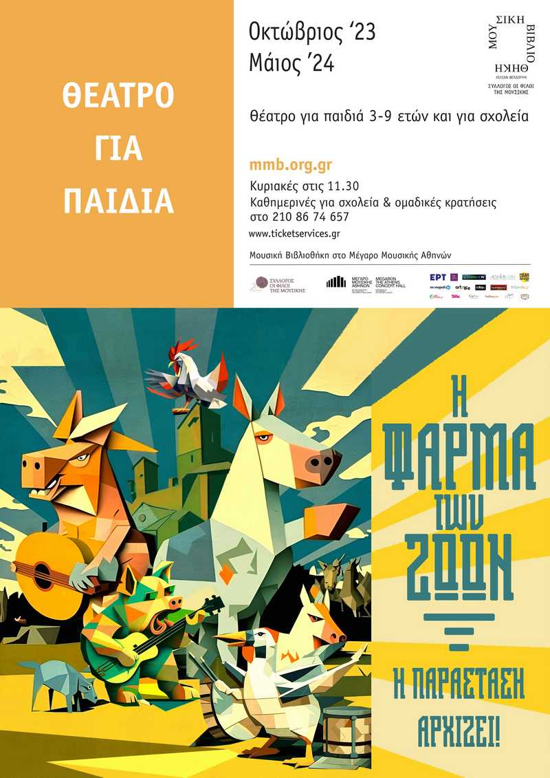 • Sunday 11 January 2026, 11:30 Η ΦΑΡΜΑ ΤΩΝ ΖΩΩΝ - Η ΠΑΡΑΣΤΑΣΗ ΑΡΧΙΖΕΙ ΜΟΥΣΙΚΗ ΒΙΒΛΙΟΘΗΚΗ ΣΤΟ ΜΕΓΑΡΟ ΜΟΥΣΙΚΗΣ