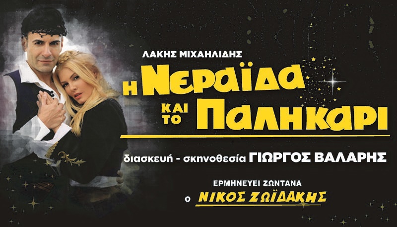 Η ΒroadwayShow Productions, παρουσιάζει 50 χρόνια μετά, την ανεπανάληπτη αισθηματική κωμωδία της FINOS FILMS, η «Η ΝΕΡΑΙΔΑ ΚΑΙ ΤΟ ΠΑΛΗΚΑΡΙ» για πρώτη φορά στο θέατρο σε διασκευή –σκηνοθεσία ΓΙΩΡΓΟΥ ΒΑΛΑΡΗ, με τους ΜΑΡΙΑ ΚΟΡΙΝΘΙΟΥ, ΠΑΝΑΓΙΩΤΗ ΠΕΤΡΑΚΗ, την ΧΡΥΣΟΥΛΑ ΔΙΑΒΑΤΗ στο ρόλο της μητέρας Φουρτουνάκη και τον ΓΙΩΡΓΟ ΚΩΝΣΤΑΝΤΙΝΟΥ στο ρόλο του πατέρα Φουρτουνάκη, σε μια υπερπαραγωγή με 30μελή θίασο, τον Κρητικό χορευτικό σύλλογο του Αντώνη Βασσάλου και τον δημοφιλή Κρητικό λυράρη ΝΙΚΟ ΖΩΙΔΑΚΗ με την ορχήστρα του να ερμηνεύει ζωντανά μαντινάδες και την παραδοσιακή Κρητική μουσική της παράστασης.