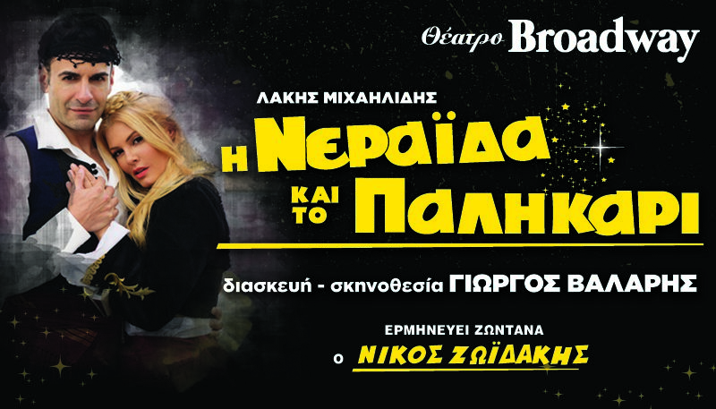 Η ΒroadwayShow Productions, παρουσιάζει 50 χρόνια μετά, την ανεπανάληπτη αισθηματική κωμωδία της FINOS FILMS, η «Η ΝΕΡΑΙΔΑ ΚΑΙ ΤΟ ΠΑΛΗΚΑΡΙ» για πρώτη φορά στο θέατρο σε διασκευή –σκηνοθεσία ΓΙΩΡΓΟΥ ΒΑΛΑΡΗ, με τους ΜΑΡΙΑ ΚΟΡΙΝΘΙΟΥ, ΠΑΝΑΓΙΩΤΗ ΠΕΤΡΑΚΗ, την ΧΡΥΣΟΥΛΑ ΔΙΑΒΑΤΗ στο ρόλο της μητέρας Φουρτουνάκη και τον ΓΙΩΡΓΟ ΚΩΝΣΤΑΝΤΙΝΟΥ στο ρόλο του πατέρα Φουρτουνάκη, σε μια υπερπαραγωγή με 30μελή θίασο, τον Κρητικό χορευτικό σύλλογο του Αντώνη Βασσάλου και τον δημοφιλή Κρητικό λυράρη ΝΙΚΟ ΖΩΙΔΑΚΗ με την ορχήστρα του να ερμηνεύει ζωντανά μαντινάδες και την παραδοσιακή Κρητική μουσική της παράστασης.