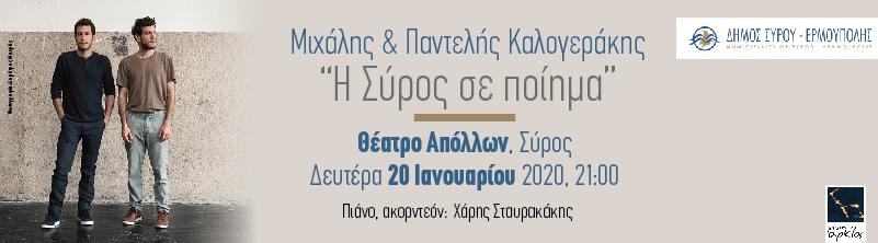 Το βλέμμα του Μιχάλη και Παντελή Καλογεράκη για το νησί στο οποίο δημιούργησαν ο Μάρκος Βαμβακάρης, ο Μάνος Ελευθερίου, ο Δημήτριος Βικέλας, ο Γεώργιος Σουρής, ο Εμμανουήλ Ροΐδης και άλλοι τόσοι που ακόμα και αν και δεν κατάγονται από εκεί εμπνεύστηκαν και έγραψαν για την Σύρο.