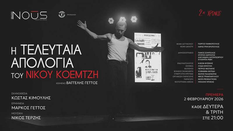 Η θεατρική παράσταση «Η Τελευταία Απολογία του Νίκου Κοεμτζή» που είναι και η πρώτη που αφορά τη ζωή του, φωτίζει αυτή την πορεία, όχι μέσα από τον μύθο, αλλά μέσα από την ανθρώπινη φωνή ενός άνδρα που ζητά - έστω και θεατρικά - να ακουστεί για τελευταία φορά μπροστά σε κοινό και όχι μπορστά σε ανακριτές και εισαγγελείς.