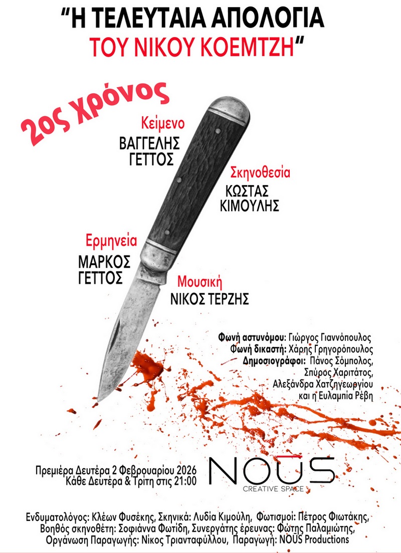 Η θεατρική παράσταση «Η Τελευταία Απολογία του Νίκου Κοεμτζή» που είναι και η πρώτη που αφορά τη ζωή του, φωτίζει αυτή την πορεία, όχι μέσα από τον μύθο, αλλά μέσα από την ανθρώπινη φωνή ενός άνδρα που ζητά - έστω και θεατρικά - να ακουστεί για τελευταία φορά μπροστά σε κοινό και όχι μπορστά σε ανακριτές και εισαγγελείς.