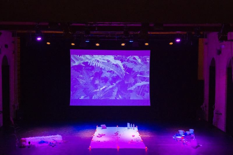 ** The material of some costumes was created during a creative workshop with the audience attending the open rehearsal during the artist's artistic residency at Teatro Dimora L'Arboreto (IT).