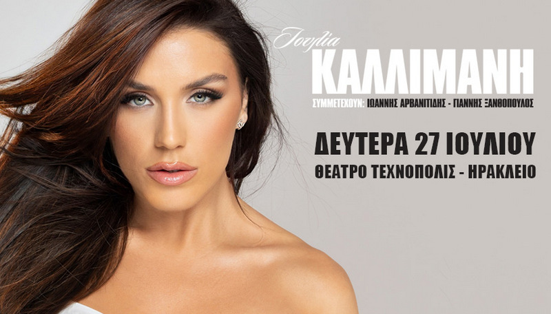 Η Ιουλία Καλλιμάνη, μία από τις πιο δυναμικές φωνές του σύγχρονου λαϊκού τραγουδιού, έρχεται για μία μοναδική εμφάνιση στο Ηράκλειο Κρήτης, στο Θέατρο Τεχνόπολις, τη Δευτέρα 27 Ιουλίου 2026.