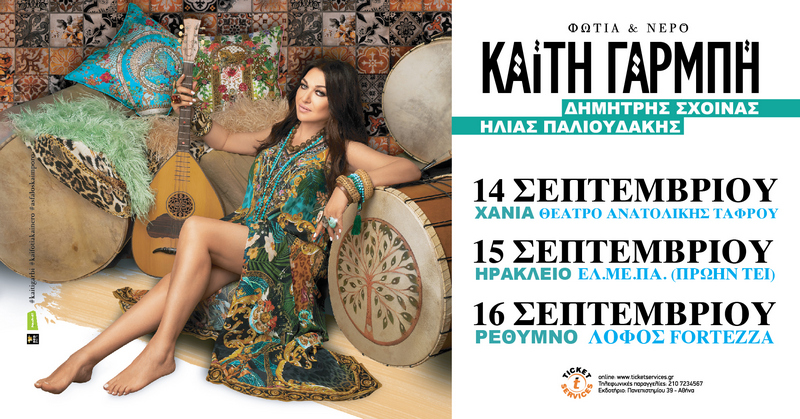 Η «ντίβα της καρδιάς μας», η Καίτη Γαρμπή με το μοναδικό της ηχόχρωμα, τις αισθαντικές ερμηνείες της και τη μαγευτική ενέργεια της πάνω στη σκηνή, δίνει τίτλο στη φετινή της περιοδεία «ΚΑΙ ΦΩΤΙΑ ΚΑΙ ΝΕΡΟ», εμπνευσμένο από ένα στίχο του καινούργιου της τραγουδιού ΑΣΦΑΛΩΣ ΚΑΙ ΜΠΟΡΩ σε μουσικη του Νίκου Τερζή και στίχους του Γιάννη Κότσιρα.
