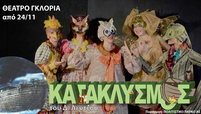 Ο «Κατακλυσμός» κάνει πρεμιέρα στο θέατρο ΓΚΛΟΡΙΑ (Ιπποκράτους 7, Αθήνα) στις 24 Νοεμβρίου 2019, ημέρα Κυριακή, ώρα 3:00μ.μ. και θα παίζεται κάθε Κυριακή για όλη τη θεατρική σεζόν.