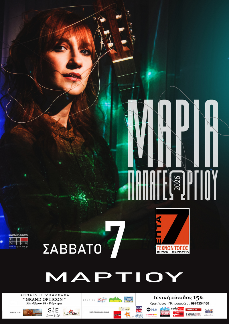 Το Σάββατο 7 Μαρτίου η Μαρία Παπαγεωργίου εμφανίζεται στο Επτά Τεχνών Τόπος στην Κέρκυρα