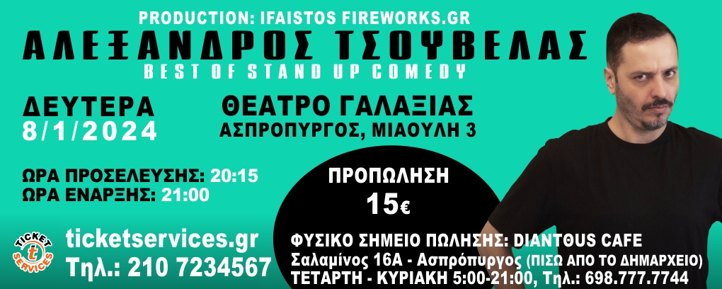 Τώρα έρχεται για ΠΡΩΤΗ ΦΟΡΑ στον Ασπρόπυργο για όρθια κωμωδία και μάλιστα με τα καλύτερα του κείμενα.