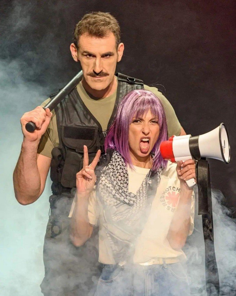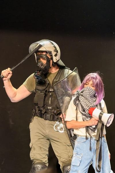 Επιτρέψτε μου μόνο να εκφράσω την χαρά μου που δύο πολύ ταλαντούχοι ηθοποιοί – η Ματθίλδη Μαγγίρα και ο Γιώργος Κοψιδάς - ενσαρκώνουν τους ρόλους του καταπιεστή και του καταπιεζόμενου, χωρίς αυτό να σημαίνει πως καταπιεστής είναι μόνο ο μπάτσος και καταπιεζόμενη μόνο η αναρχικιά. Ελπίζω να γελάσετε μέχρι δακρύων με τις γελοιότητες της εξουσίας, αλλά και με τις υπερβολές εκείνων που νομίζουν πως, σπάζοντας και καταστρέφοντας ό,τι δεν τους ανήκει, ο κόσμος θα αλλάξει. Τούς παραπέμπω στη φράση του Τολστόι «όλοι θέλουν ν'αλλάξουν τον κόσμο, κανένας τον εαυτό του».