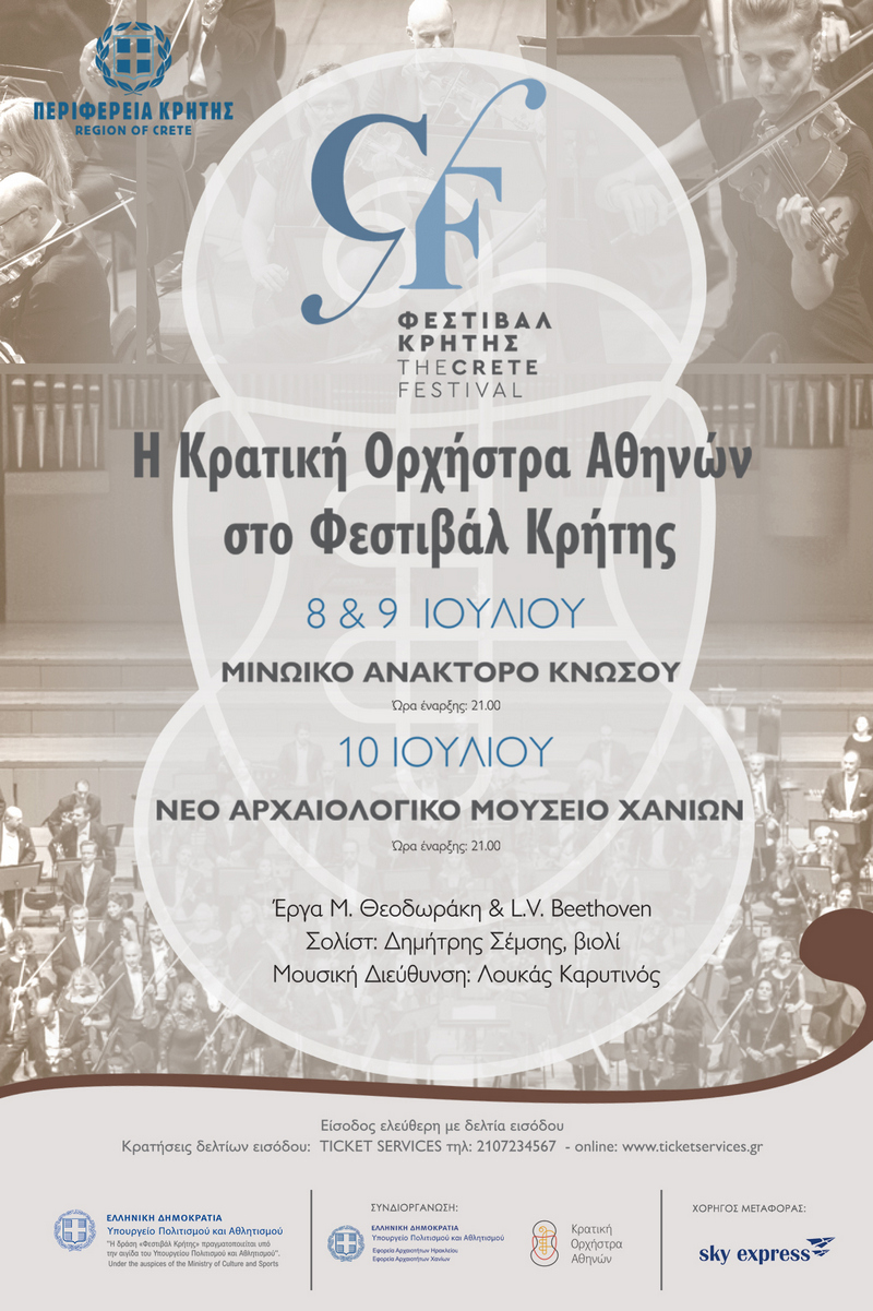 Η Περιφέρεια Κρήτης υποδέχεται στο νησί την διεθνώς φημισμένη Κρατική Oρχήστρα Αθηνών σε τρεις μεγάλες συναυλίες στο παγκόσμιο λίκνο του Μινωικού πολιτισμού, την Κνωσό και στο νέο Αρχαιολογικό Μουσείο Χανίων.