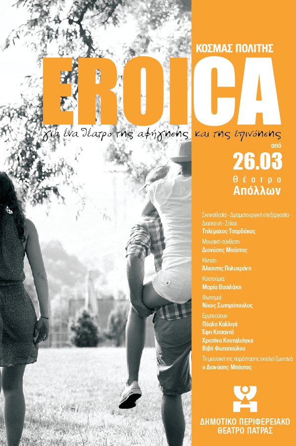 Λίγα λόγια για το μυθιστόρημαΗ EROICA του Κοσμά Πολίτη εκδόθηκε το 1938 και τιμήθηκε με το Κρατικό Λογοτεχνικό Βραβείο. Αποτελεί έργο-σταθμό της ελληνικής λογοτεχνίας θέτοντας για πρώτη φορά τους προβληματισμούς της εφηβικής ηλικίας στην νεοελληνική λογοτεχνία. Οι νεαροί ήρωες ισορροπούν στο μεταίχμιο ανάμεσα στην παιδική ηλικία και την αναπόφευκτη ενηλικίωση, προσπαθώντας να αναμετρηθούν με έννοιες πολύ σημαντικές και πολύ άγνωστες όπως ο ηρωισμός και ο ερωτισμός. Το έργο γράφτηκε στην Πάτρα και την «φωτογραφίζει» χωρίς όμως να την κατονομάζει.